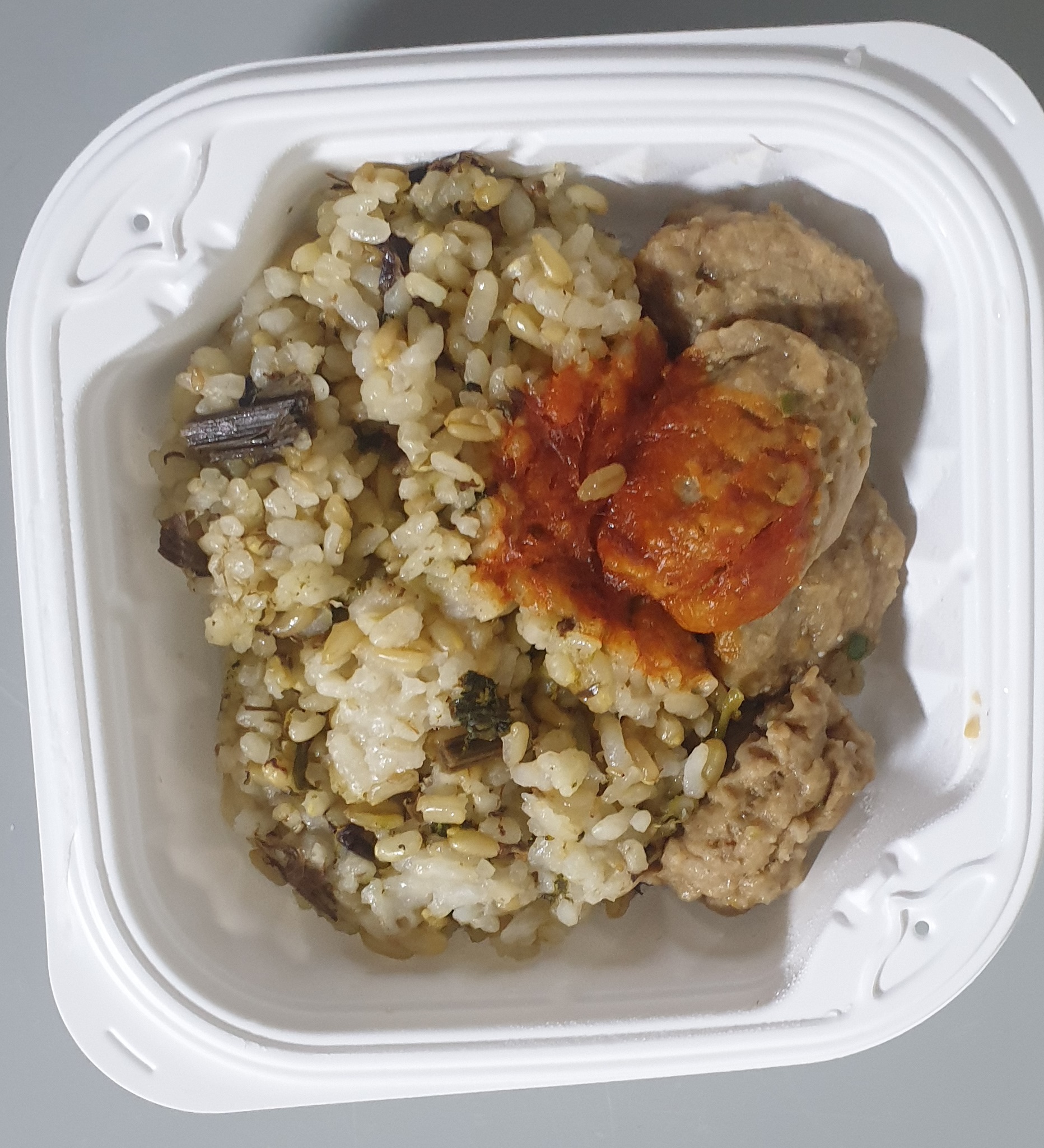 1. 도시락이름이 삼색나물잡곡밥 날치알스테이크볼인데, 날치알은 거의 느껴지지가 않는다.